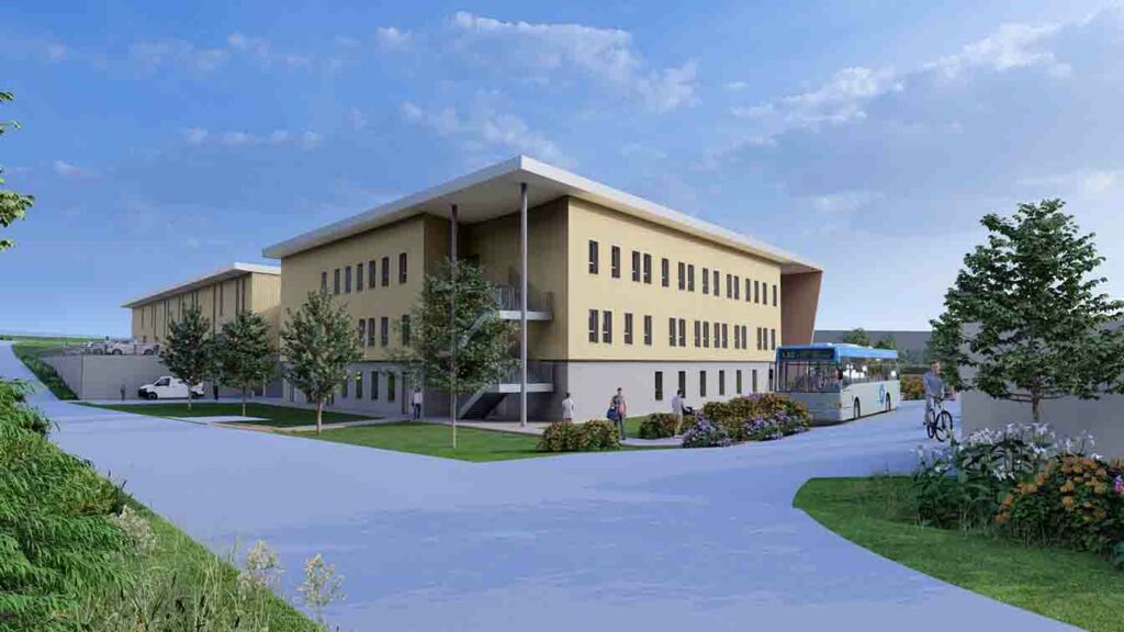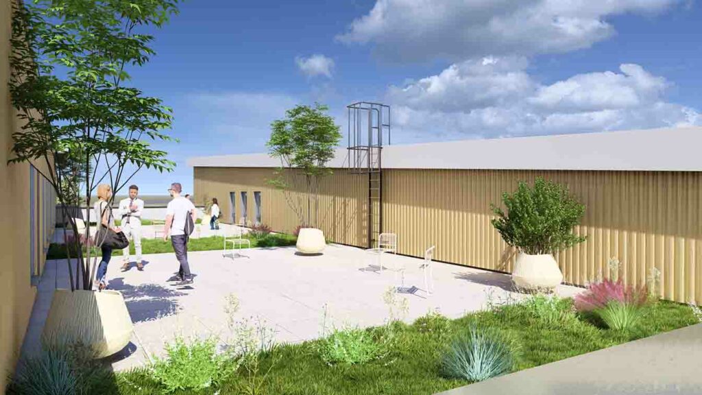 Avec près de 100 arbres plantés, le nouveau site comprendra un bel aménagement paysager composé d’essences naturellement peu gourmandes en eau. Une gestion circulaire de l’eau est également prévue notamment pour auto-alimenter la station de lavage dédiée aux véhicules pédagogiques en mécanique, ainsi que pour l’entretien des espaces verts.